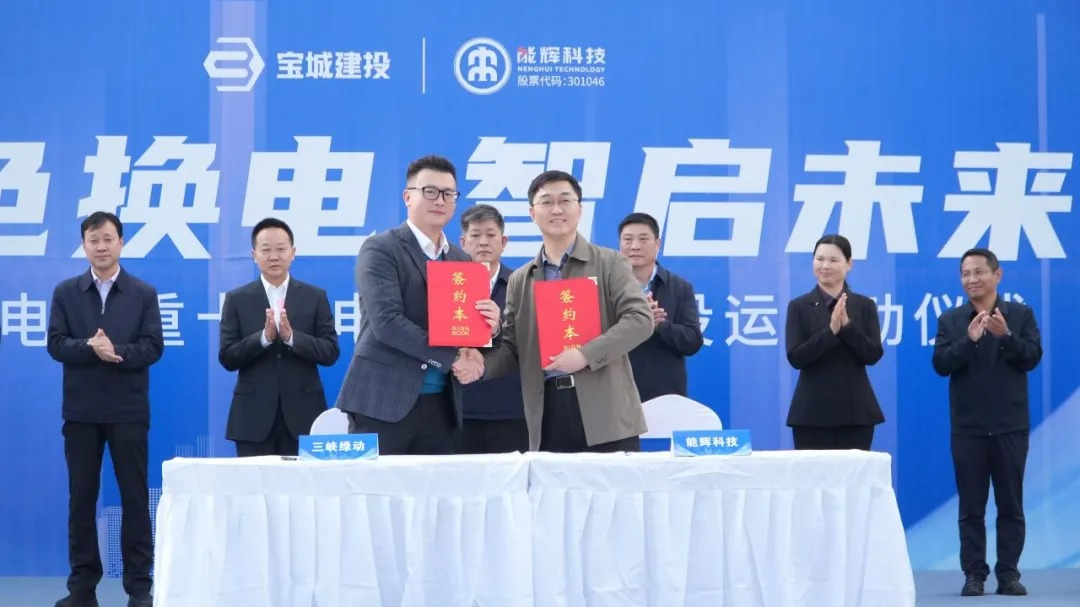仪式尾声,能辉科技与三峡绿动签署了合作协议,宝城新能源与各合作单位签署了500万吨砂石外运合作协议,这标志着能辉科技在重卡换电应用领域进入了关键阶段。